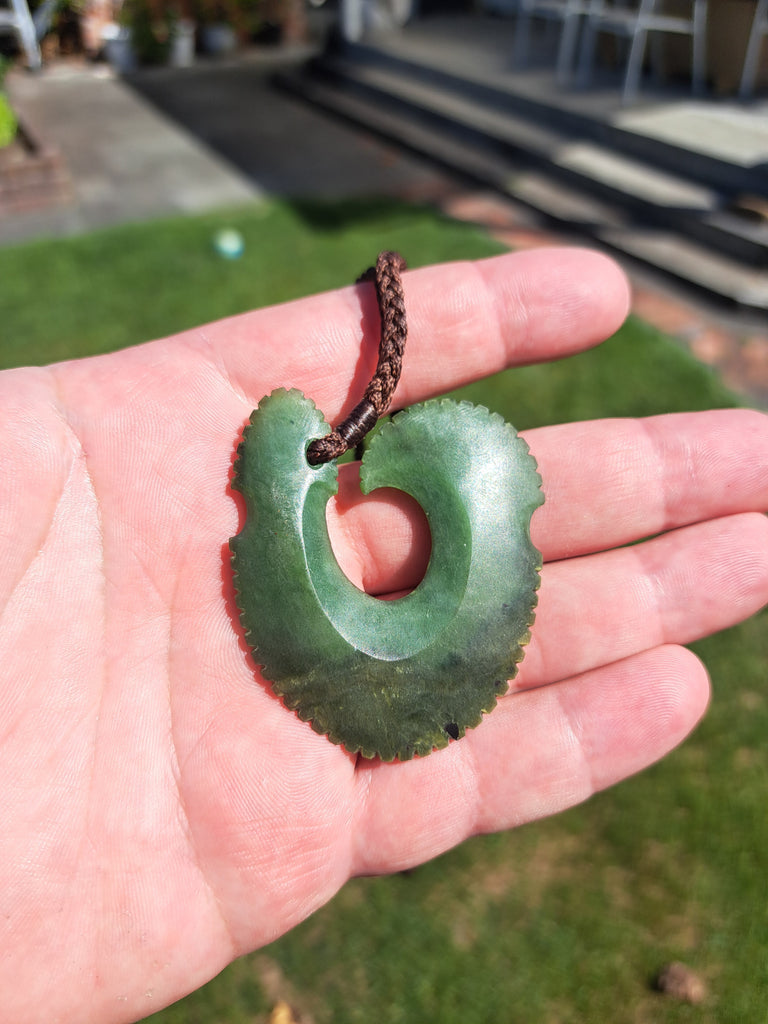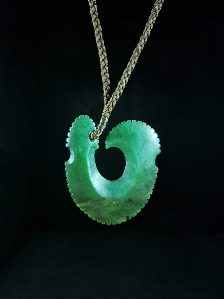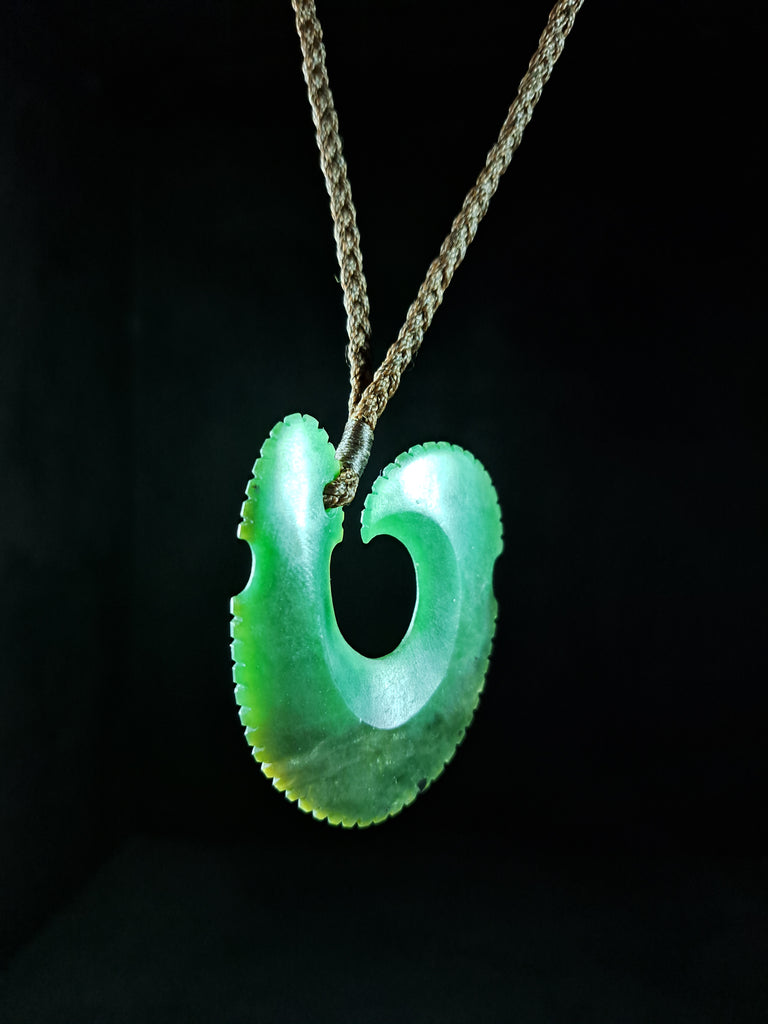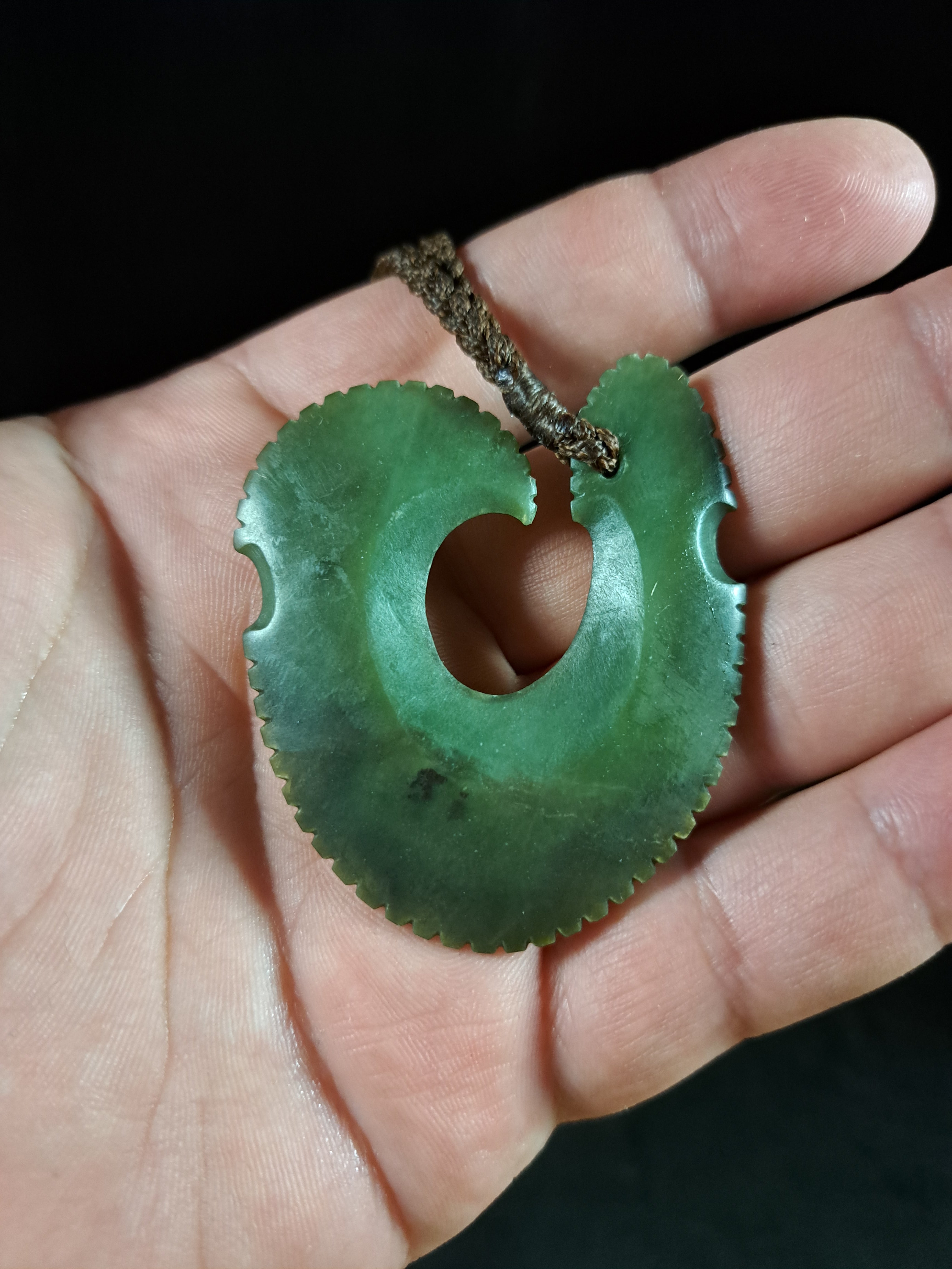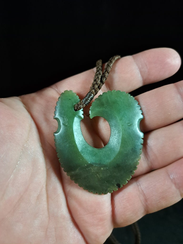 This Matau is made from a beautiful piece of Pounamu from the Tasman region in Aotearoa, and features intricate beveled notching around the entire Piece.
