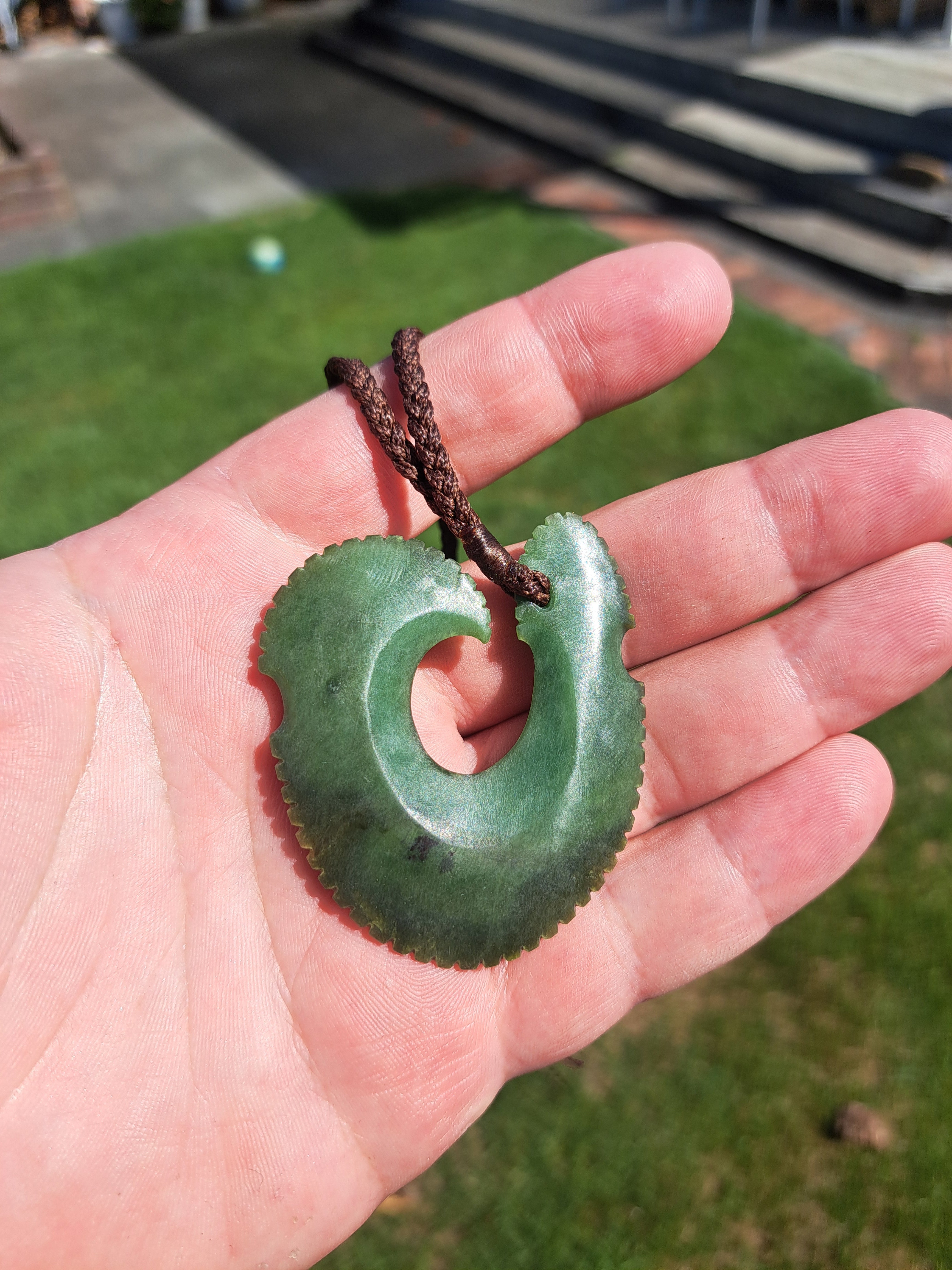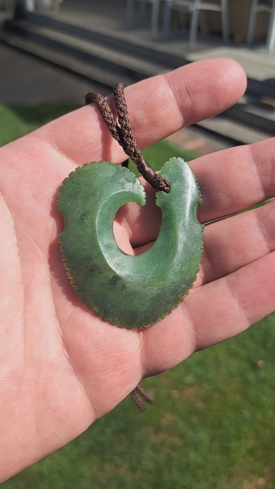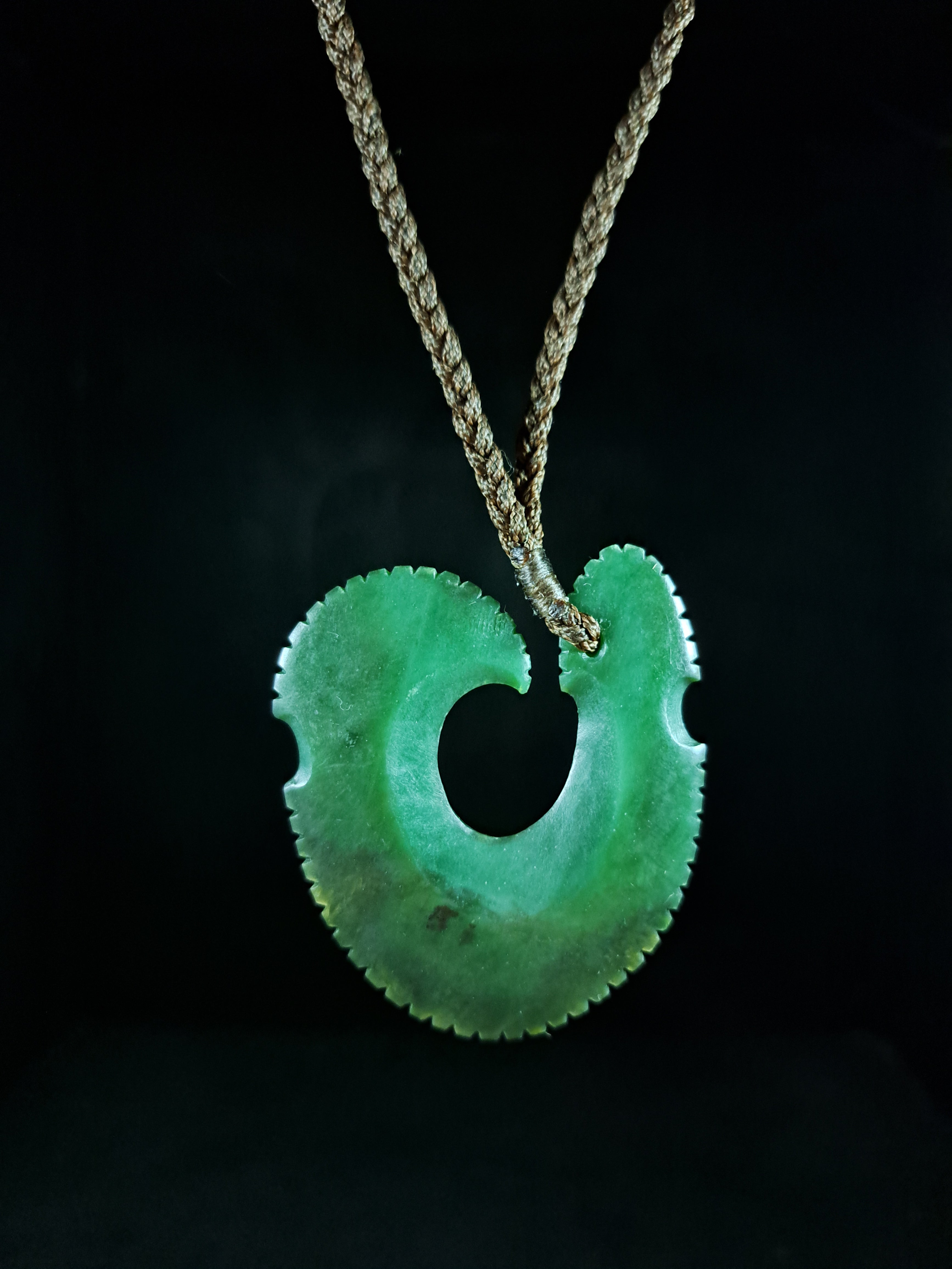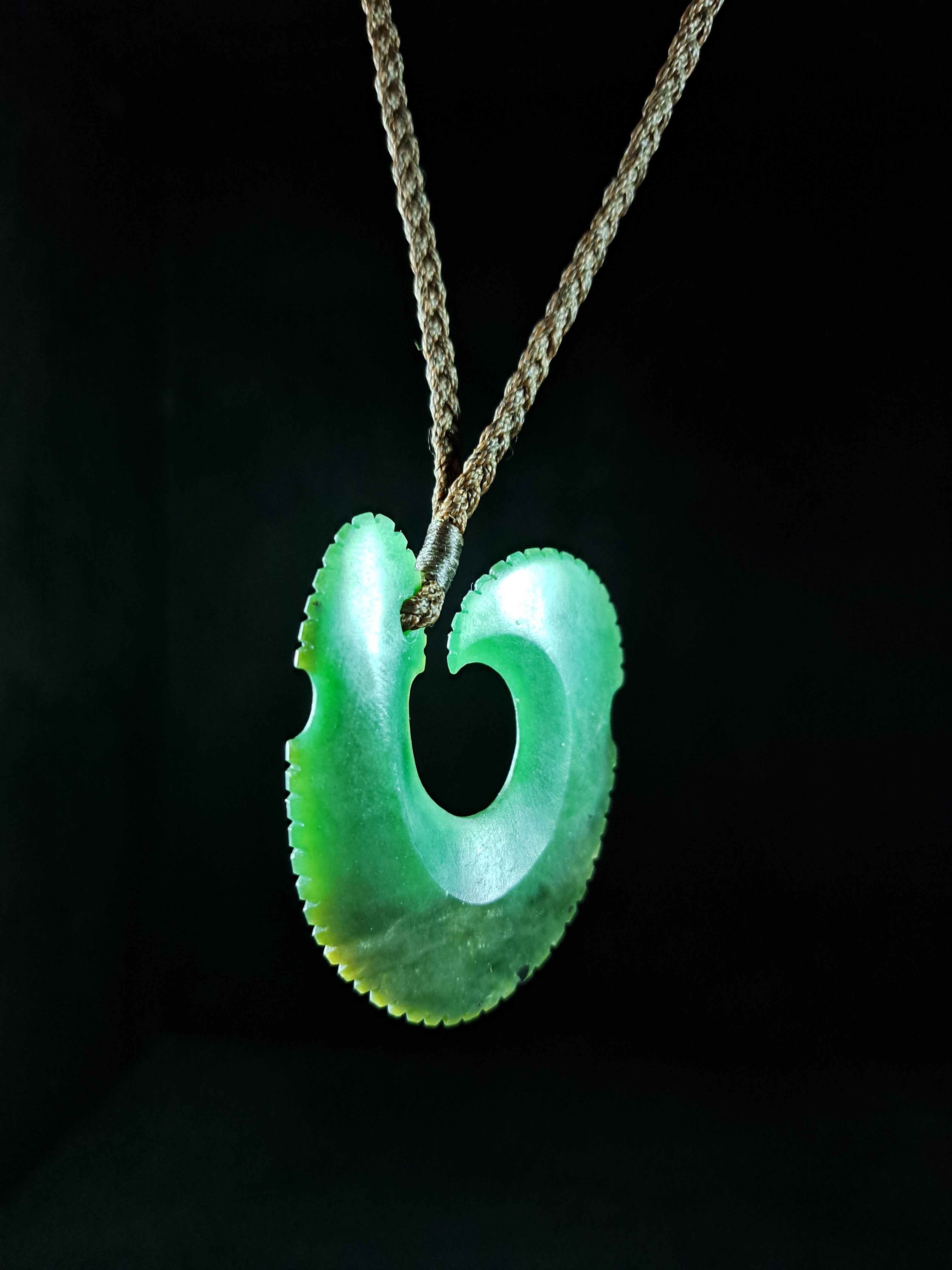 This Matau is made from a beautiful piece of Pounamu from the Tasman region in Aotearoa, and features intricate beveled notching around the entire Piece.