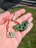 This Pekapeka was carved from a nice piece of South Westland Pounamu, and though it was carved with modern tools, it has intentionally followed the form, flow, contours, and finish seen on our customary pieces. A true challenge to replicate historical Taonga.