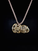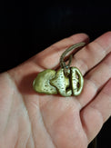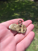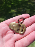 This Hei Tiki has been cast into Bronze (Silicon Brass) from a Whalebone Hei Tiki that I hand-carved. I have then changed the colour of the Bronze using chemicals to create a 'patina', which is similar to an oxidized layer on the Bronze itself - kind of like a colourful rust.