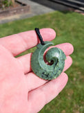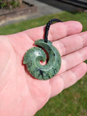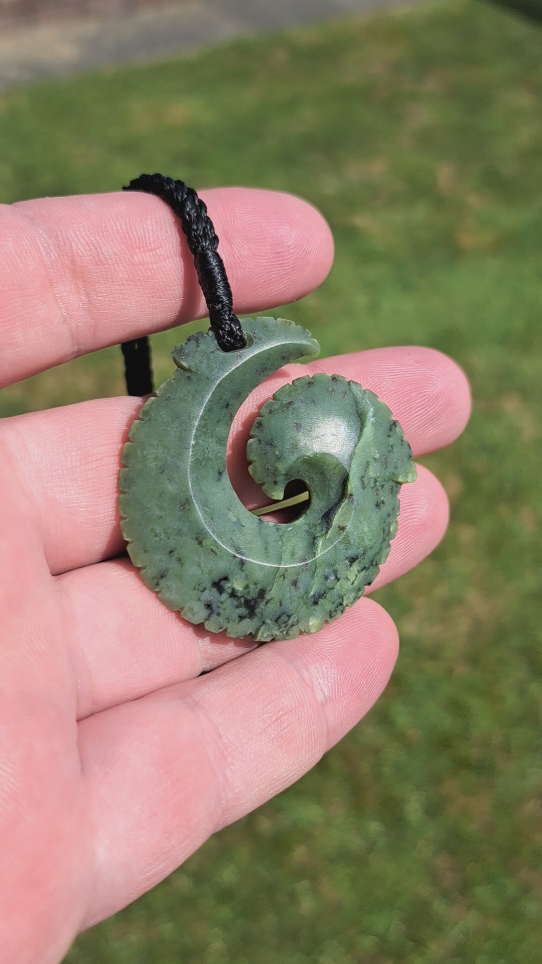 This Matau is made from a beautiful piece of Kawakawa Pounamu from right here in Aotearoa, and features intricate beveled notching around the entire Taonga.