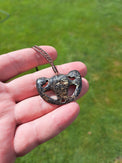 This is a piece of Dinosaur Bone from a Brontasaurus (a.k.a Agatized Gembone) - carved into the shape of a Kabutops Head. Kabutops is a Pokemon - and if you're anything like me, you were raised on Pokemon.
